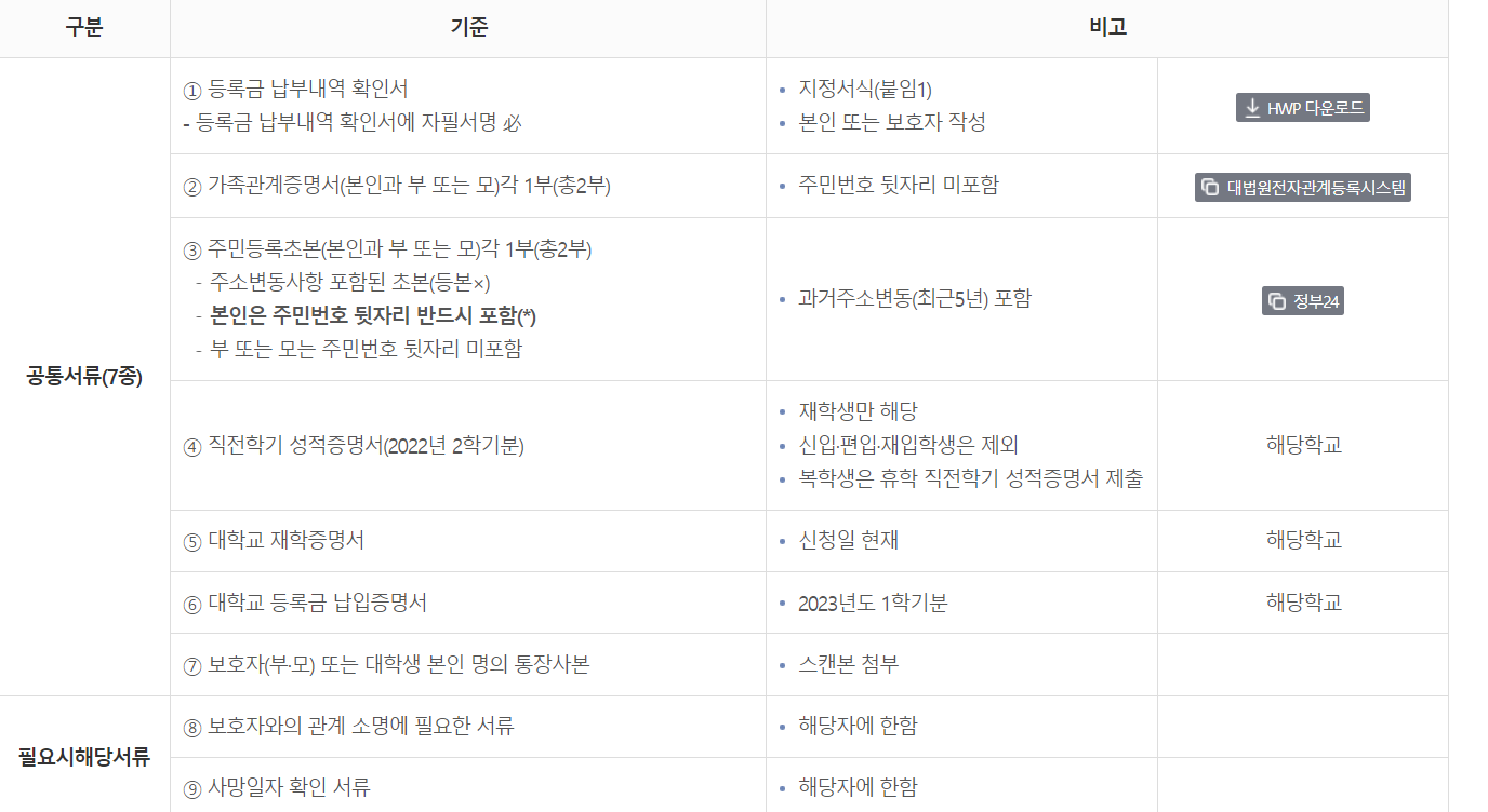 다자녀 가구 대학생 등록금 제출 서류