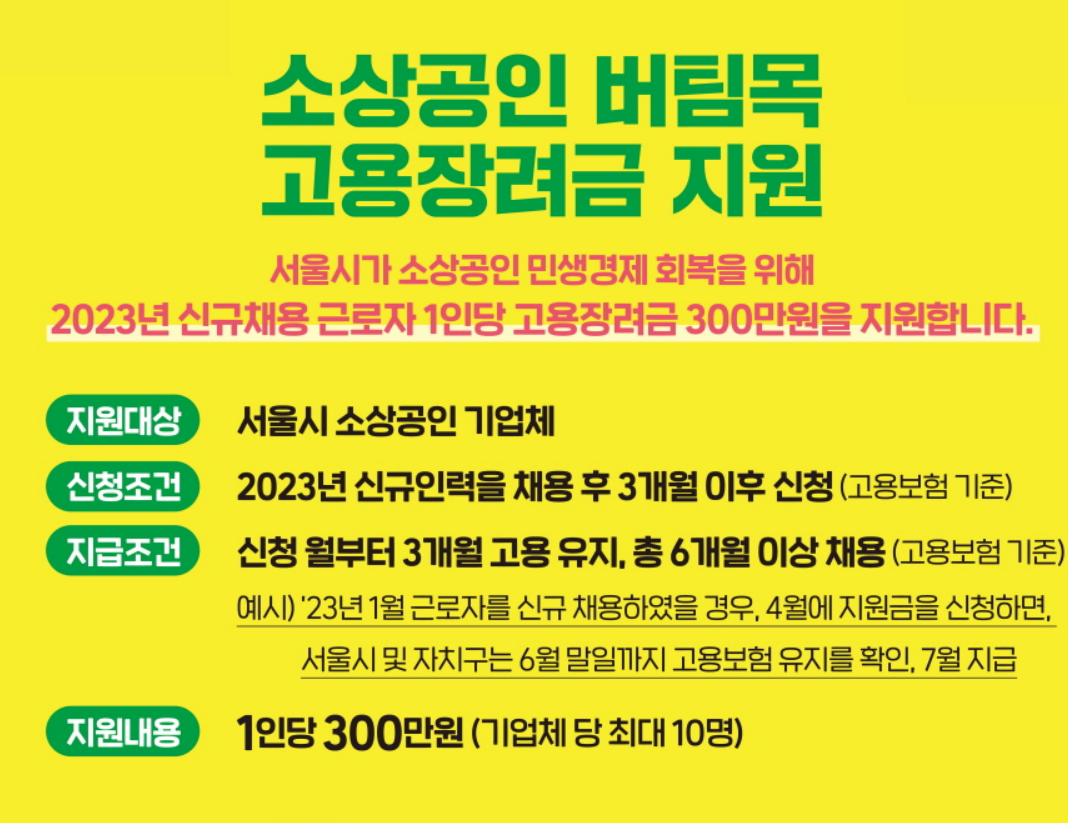 서울시에서 경제 회복을 위해서 소상공인 고용 장려금을 지원합니다.
