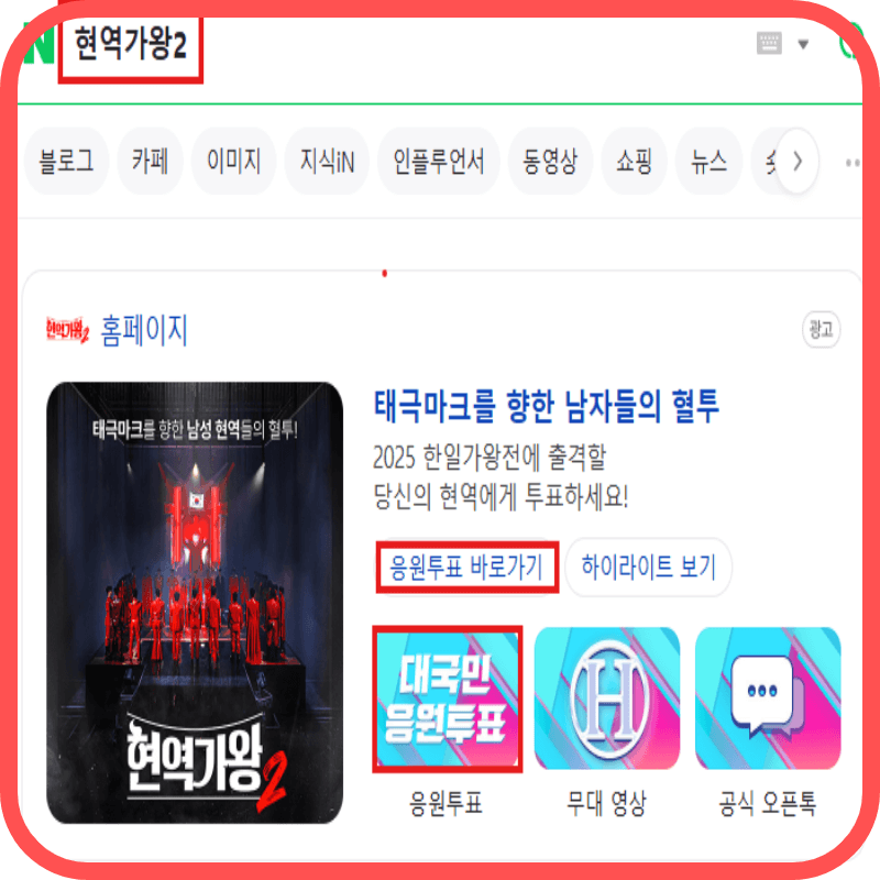 네이버 검색창에 현역가왕2만 검색하시면 됩니다.